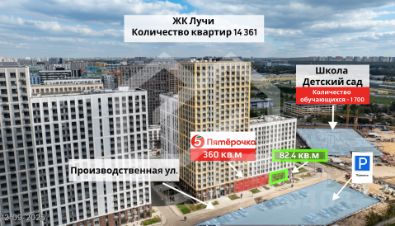 1066963-s . Предлагаем угловое помещение свободного назначения формата street-retail в ЖК "Лучи", площадью 51.4 кв. м, расположенное на первом этаже 24-этажного жилого дома. Корпус: 3-4.