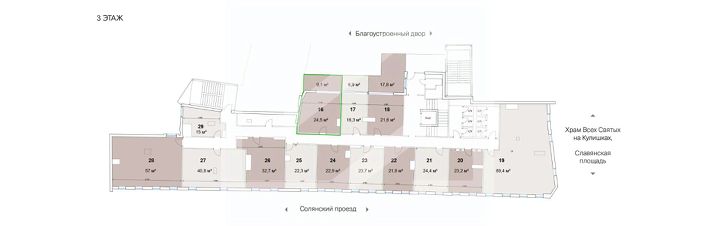 958076-s . Предлагаем помещение свободного назначения, общей площадью 33.6 кв. м, расположенное на третьем этаже 3-этажного административного здания.