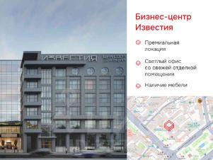 Предлагаются в аренду офисные помещения в историческом здании газеты Известия 1975 года постройки (новый корпус), расположенном в самом центре Москвы на улице Тверская. Объект сочетает в себе сохранённый архитектурный облик модернизма и современные инженерные решения.