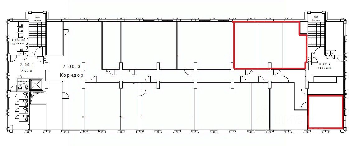 Площадь помещения 118,7 м2 по БТИ. Рacчeтная плoщадь 132,9 м2 (12% коридорный коэффициент). Кабинетная планировка, 4 кабинета на этаже.