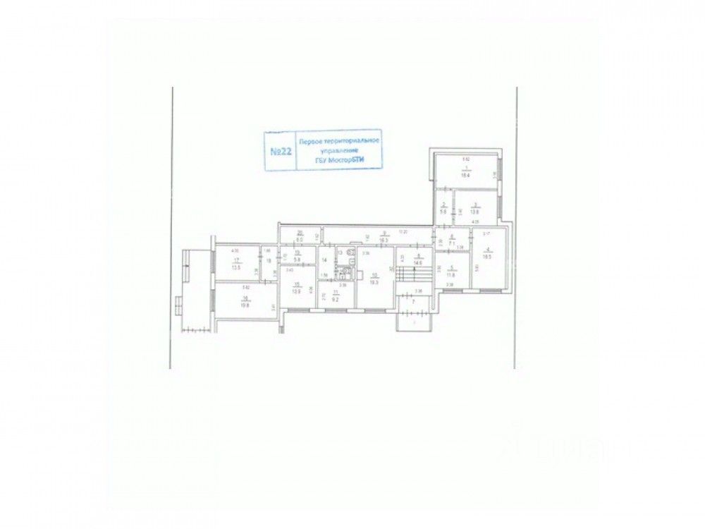 Высота потолков 2.6 м. Кабинетная планировка . Девять кабинетов с окнами.