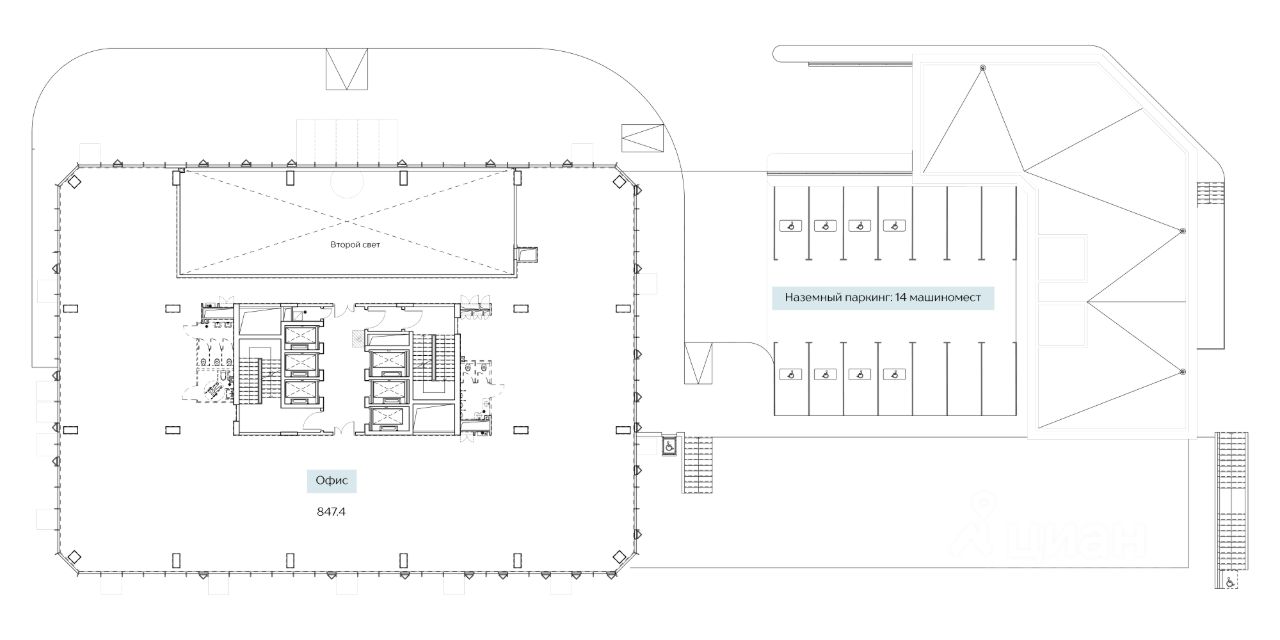 • Гибкие условия аренды: в аренду доступны от одного до нескольких этажей. Площадь этажа 1 042,4м².