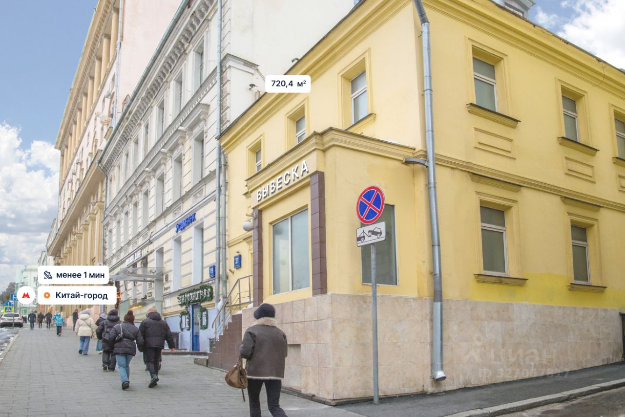 Здание располагается в Лубянском проезде, 21с1 в шаговой доступности от метро Китай-город, менее 1 минуты пешком. Отличная пешеходная и транспортная доступность. Отдельная входная группа с фасада с 1-ой линии, несколько входов со двора. Собственный наземный паркинг на 3-5 м/м. Помещение расположено в деловом и туристическом коридорах. Высокий рекламный потенциал и возможности размещения вывески на фасаде. В окружении расположены: Гостиный двор, парк Зарядье, Галерея Солянка, большое количество исторических достопримечательностей, посольств и госучреждений, а также развитая ресторанная инфраструктура.