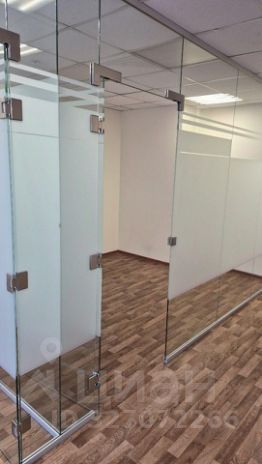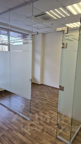 Офис поделен на 3 части стеклянными перегородками (двери стеклянные закрываются на ключ).