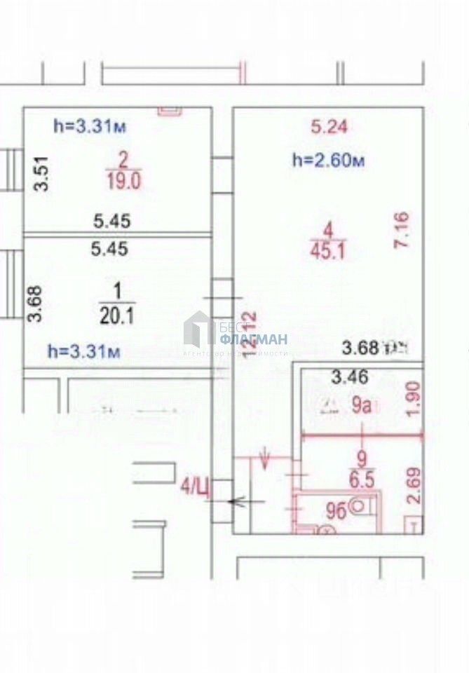 Высота потолков: 2.8 м