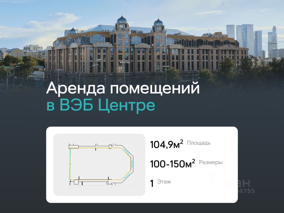 В аренду предлагается торговое помещение в многофункциональном комплексе ВЭБ Центр.