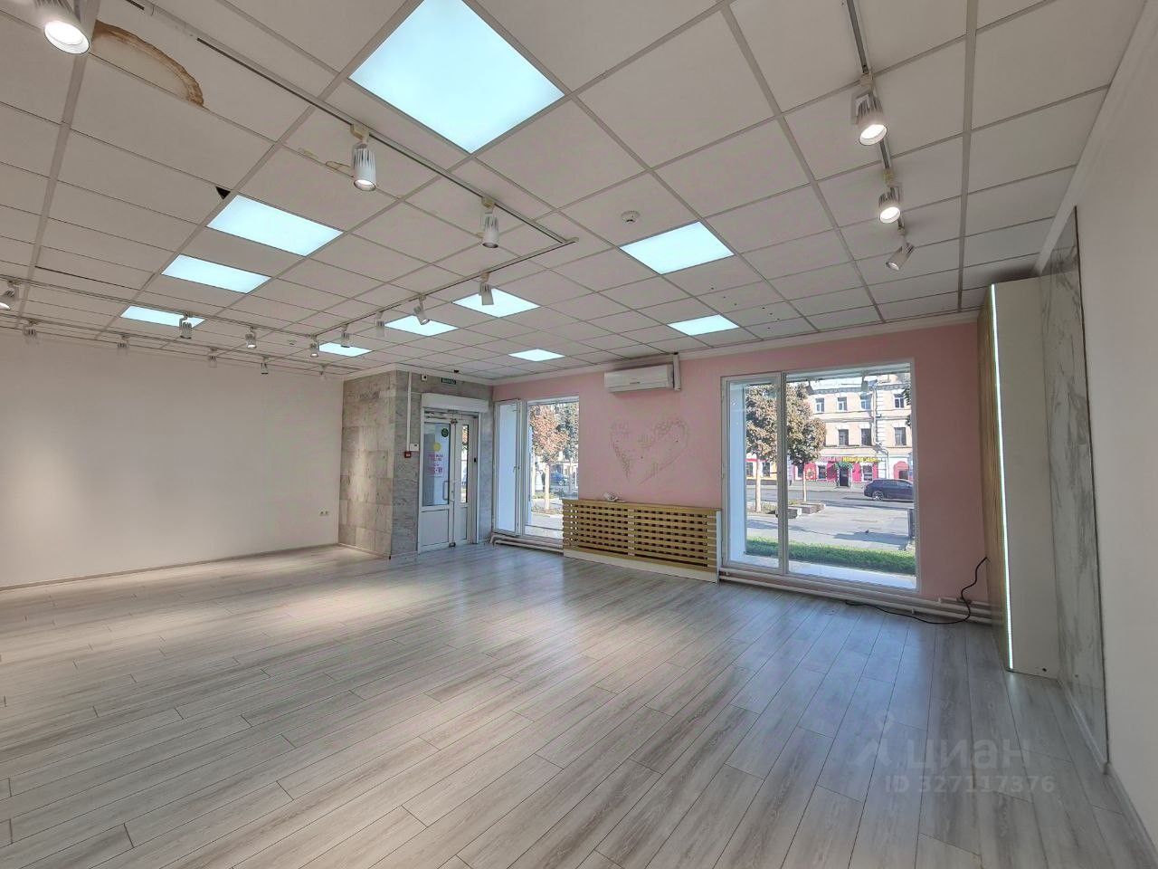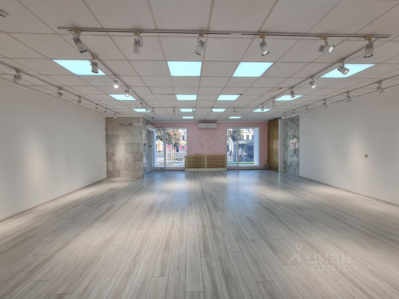 Площадь помещения 128.3 кв.м. с двумя витринными окнами.