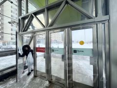 — Входная группа и вывеска отлично видны со стороны станции метро.