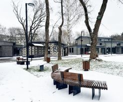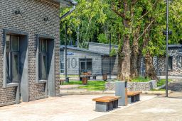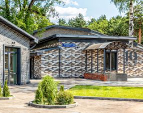 Отделка фасадов выполнена панелями с имитацией клинкерного кирпича. Дополнительно на территории организованы зоны отдыха на свежем воздухе, также дополнительно имеется возможность для организации летних веранд и кафе.