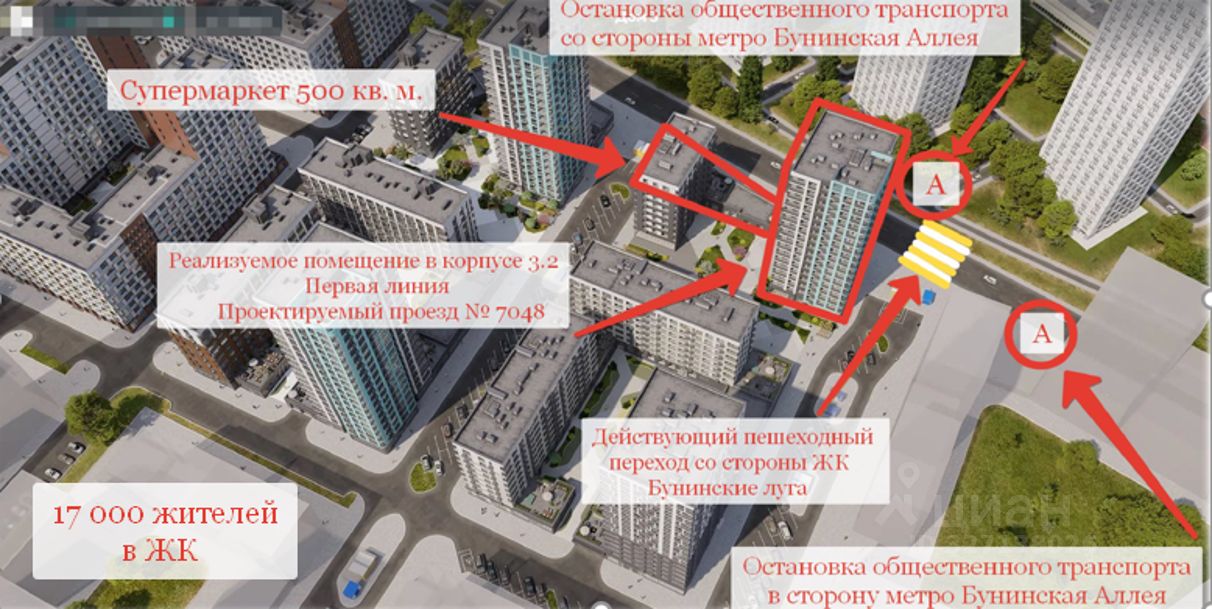Торговое помещение 120 кв. м. в ЖК "Бунинские кварталы".