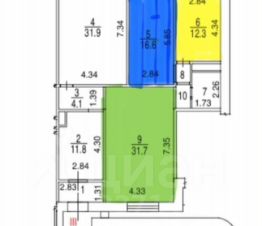 Сдаётся помещение свободно назначения площадью 17, 32, 120 м2 на планировке помещения номер 5 и 9.