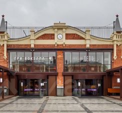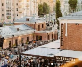 Прямо напротив входа модное пространство ДЭПО. Вся инфраструктура тусовочного места с ресторанами, барами и т.д.