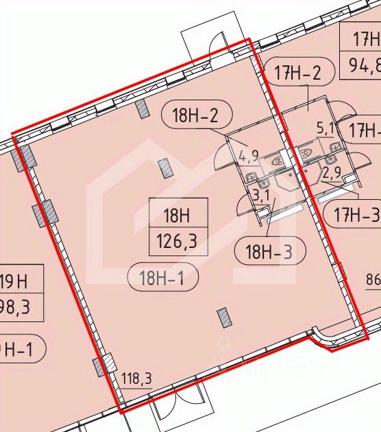 1001572-f . Предлагаем помещение свободного назначения формата street-retail в ЖК "МАРК", площадью 126.3 кв. м, расположенное на первом этаже 18-этажного жилого дома. Корпус: 3.