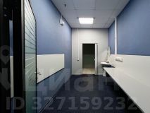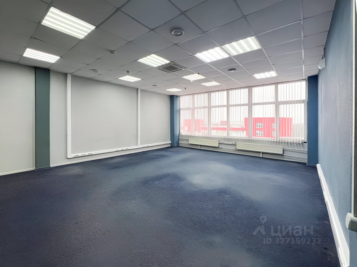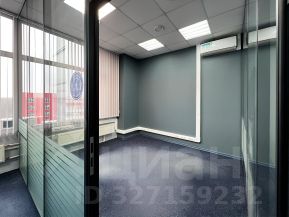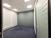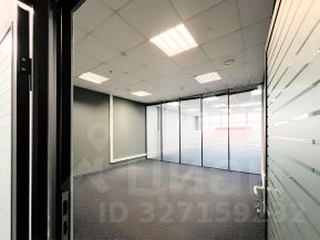 Офисное помещение из 8-х кабинетов со стеклянными перегородками, помещением кухни и мокрой точкой, приточно-вытяжная система вентиляции, сплинкерное пожаротушение, установлены АПС и системы оповещения при пожаре. Пол - ковролин, стены - обои под покраску, потолок армстронг.