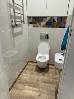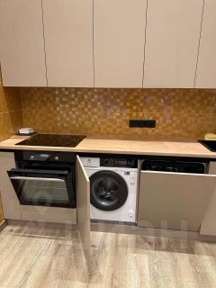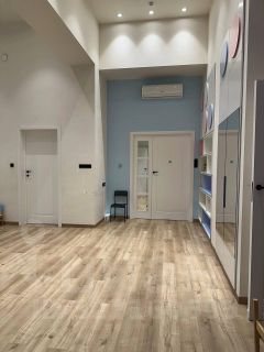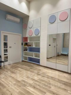 Удобная планировка: просторное помещение 40 м2, оборудовано кухней и техникой (посудомоечная и стиральная машины, холодильник, индукционная плита), маленькая комната, два санузла, коридор, предбанник. Установлены кондиционеры и пожарная сигнализация.