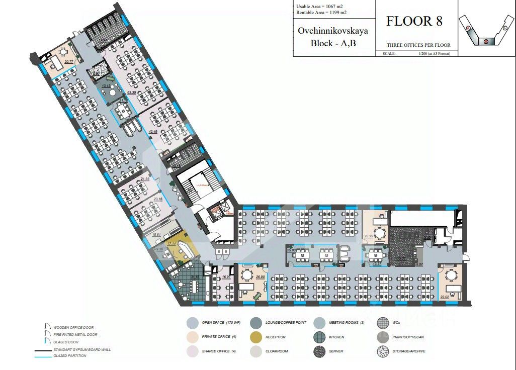 1108817-o . Предлагаем в аренду сервисный офис площадью 1 199 кв. м, 171 рабочее место, расположенный в бизнес-центре на Овчинниковской набережной