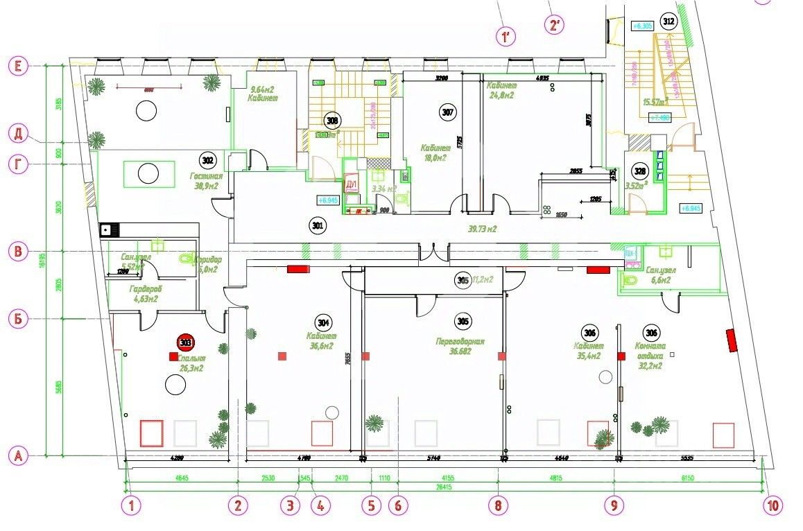 - Планировка кабинетная