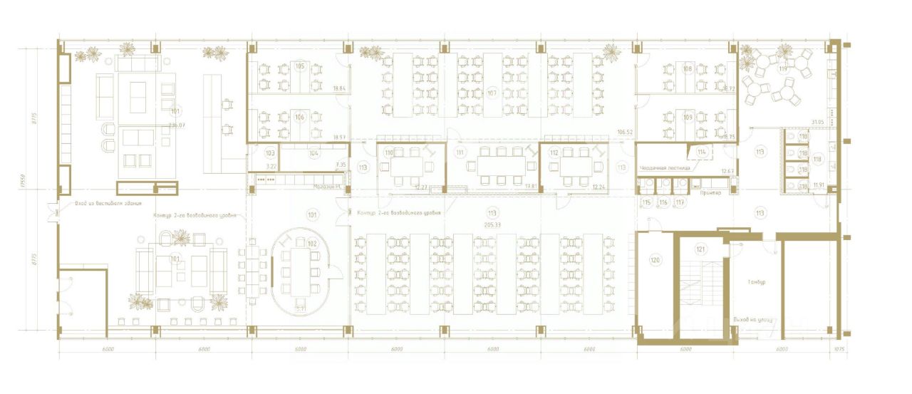 - Закрытый периметр этажей, оборудованные пространства, большие панорамные окна, высокие потолки, современный дизайн интерьера.