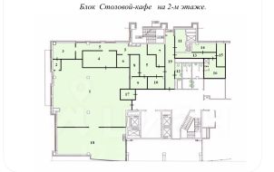Предлагаем в аренду комплекс помещений для организации питания сотрудников и арендаторов бизнес-центра. В комплекс входит блок помещений на 2-м этаже для организации столовой-кафе, включающий в себя помещения для кухни полного цикла, два зала для посетителей и подсобные помещения, собственную душевую и санузел для сотрудников кафе, блок погрузки/разгрузки продуктов и материалов, в составе специального лифта, подъемника и склада для хранения.