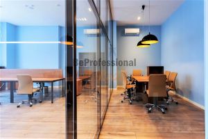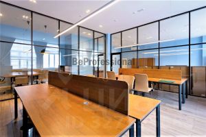 Предлагаемый офисный блок расположен на 7-м этаже. Офис включает себя: открытое разделенное стеклянными перегородками на 3 части. Выполнена современная качественная отделка, офис предлагается в аренду с мебелью как на фотографиях. Помещение оборудовано системой вентиляции и кондиционирования. Высокие потолки (более 3-х метров) и современные светильники придают помещению дополнительный объем и освещение.