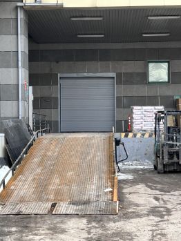 Ворота на пандусе, удобно разгружать и фуру и малотоннажный транспорт.