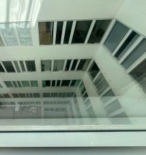 - В здании четыре атриума, в солнечный день заполняемые лучами, вечером подсвеченные софитами.
