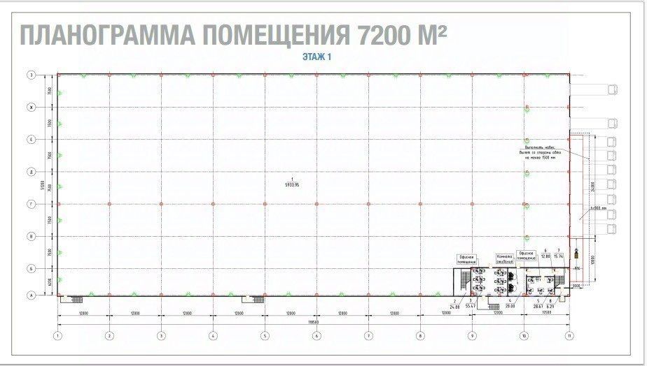 Площадь пoмeщeния: 7200 м²