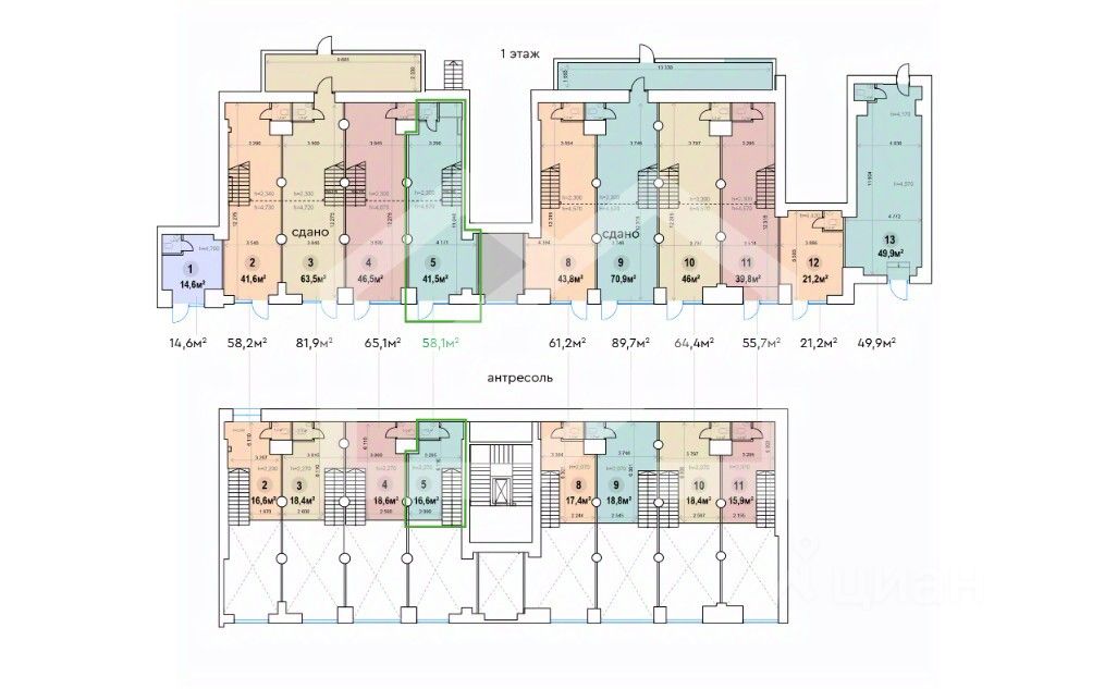 814206-s . Предлагаем торговое помещение, площадью 58,1 кв. м., расположенное на первом этаже и антресоли жилого дома.