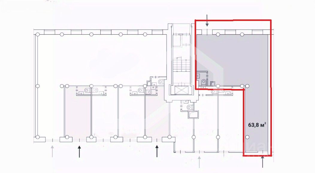 902141-s . Предлагаем помещение свободного назначения формата street-retail, площадью 63.8 кв. м, расположенное на первом этаже 9-этажного жилого дома.