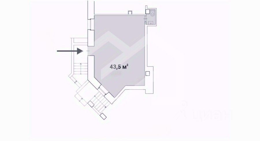636172-s . Предлагаем помещение свободного назначения формата Street Retail, площадью 43,5 кв. м., расположенное на первом этаже жилого дома.