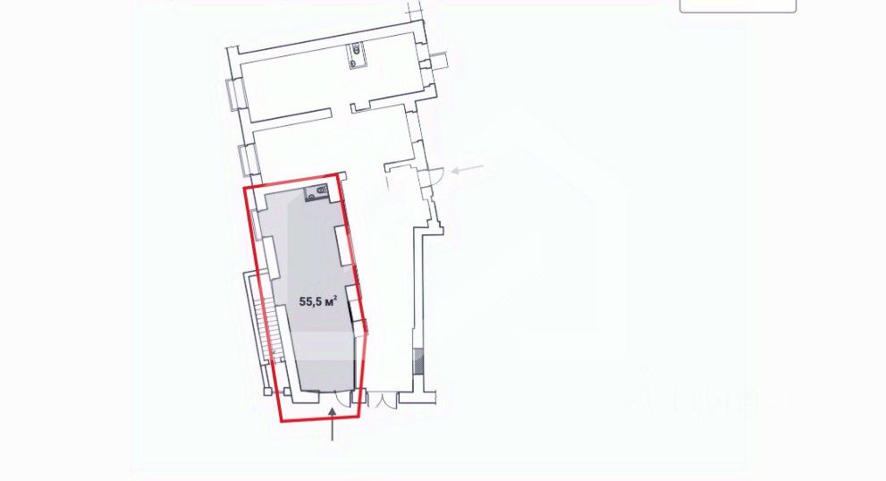 1130642-s . Предлагаем помещение свободного назначения формата Street Retail, площадью 55,5 кв. м., расположенное на первом этаже жилого дома.