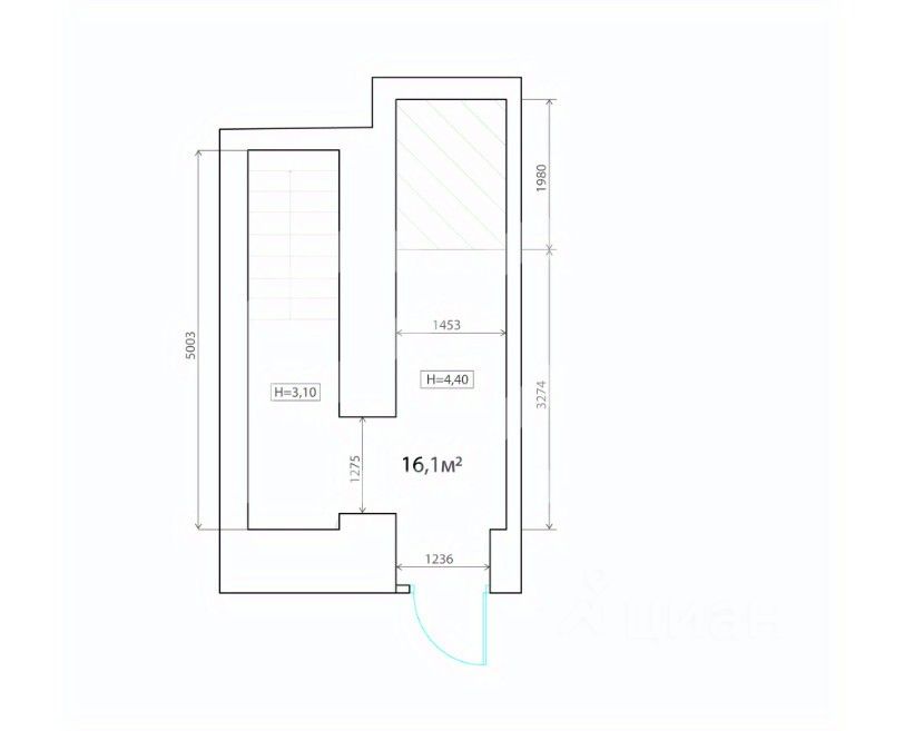 -высота потолков: от 3.1 м до 4.4 м.