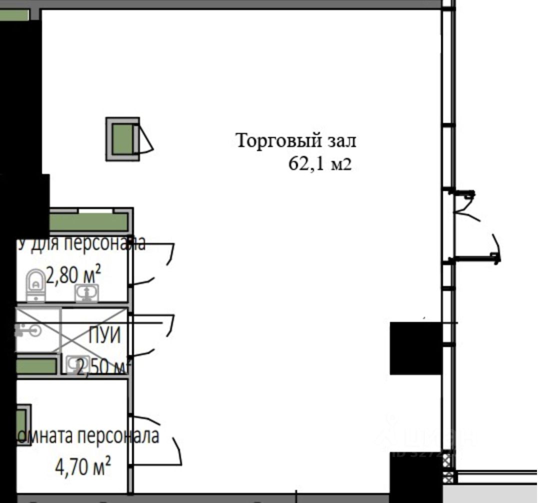 Высота потолков: 4 м, свободная планировка (несущие колонны по периметру).