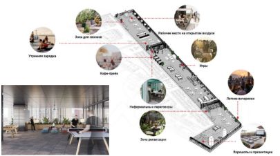 Блок на 83 рабочих места площадью 525 м2 с приватным выходом на террасу (282 м2)