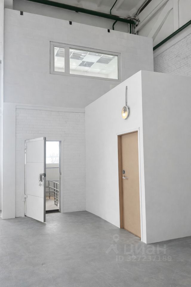Светлое помещение с панорамными окнами и высокими потолками до 9 м.