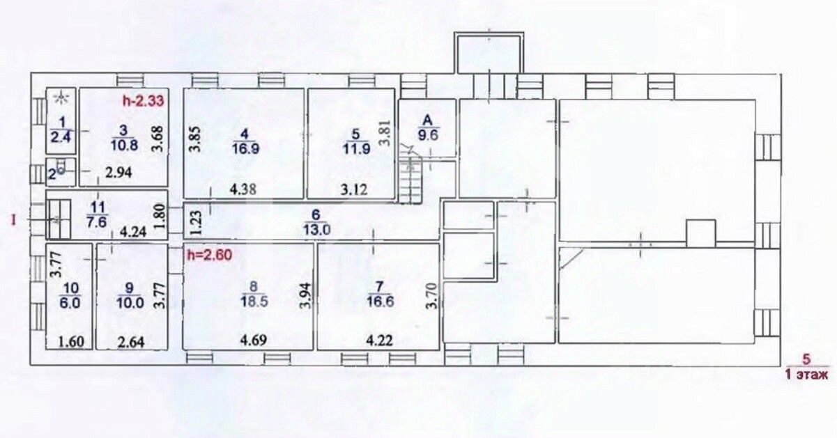 -высота потолков: от 2.3 до 2.6 м.