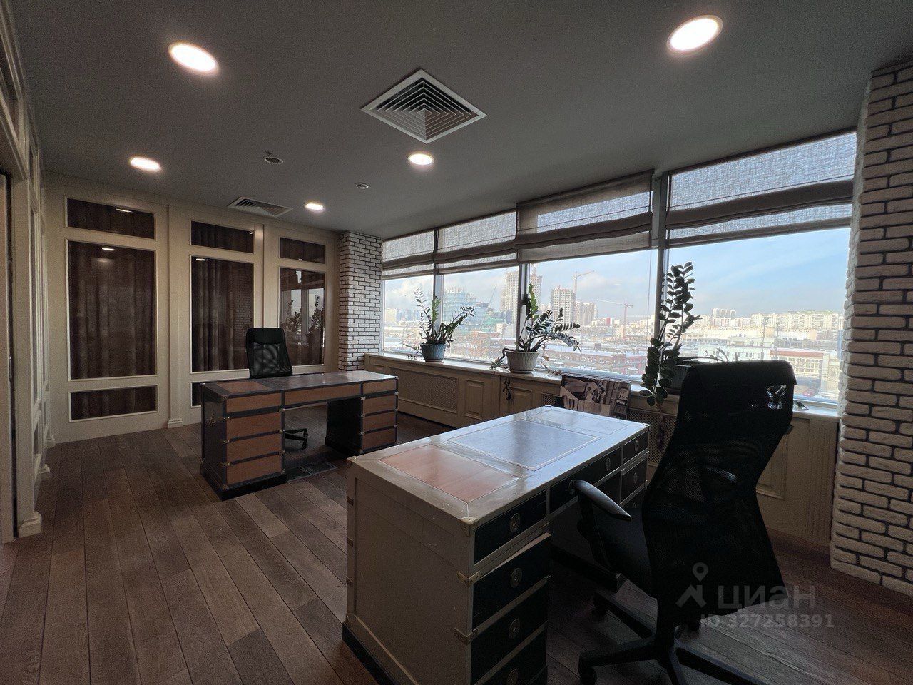6 этаж - 627 м2, угловой офисный блок с панорамными окнами.