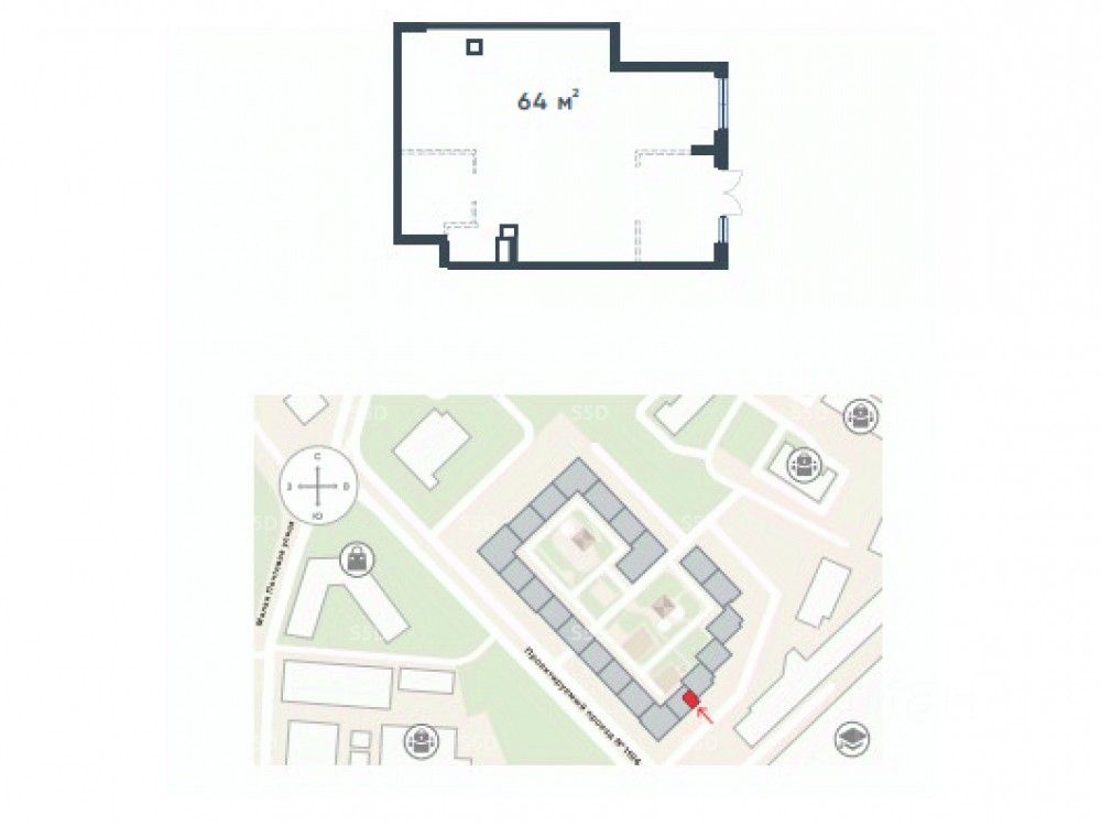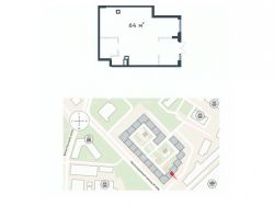 1 этаж 19-этажного жилого дома, общая площадь 64 кв.м.