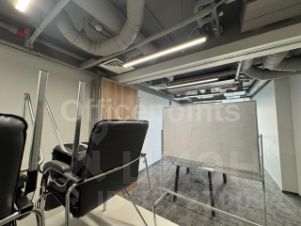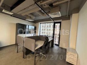 В помещении выполнена офисная отделка, с мебелью, кабинетная планировка.