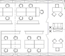 Офис состоит из большого Open Space и двух отдельных кабинетов из стеклянных каркасных перегородок.