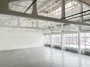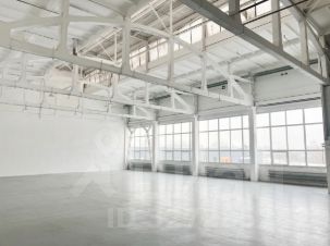 Светлое помещение с панорамными окнами и высокими потолками до 12 м.