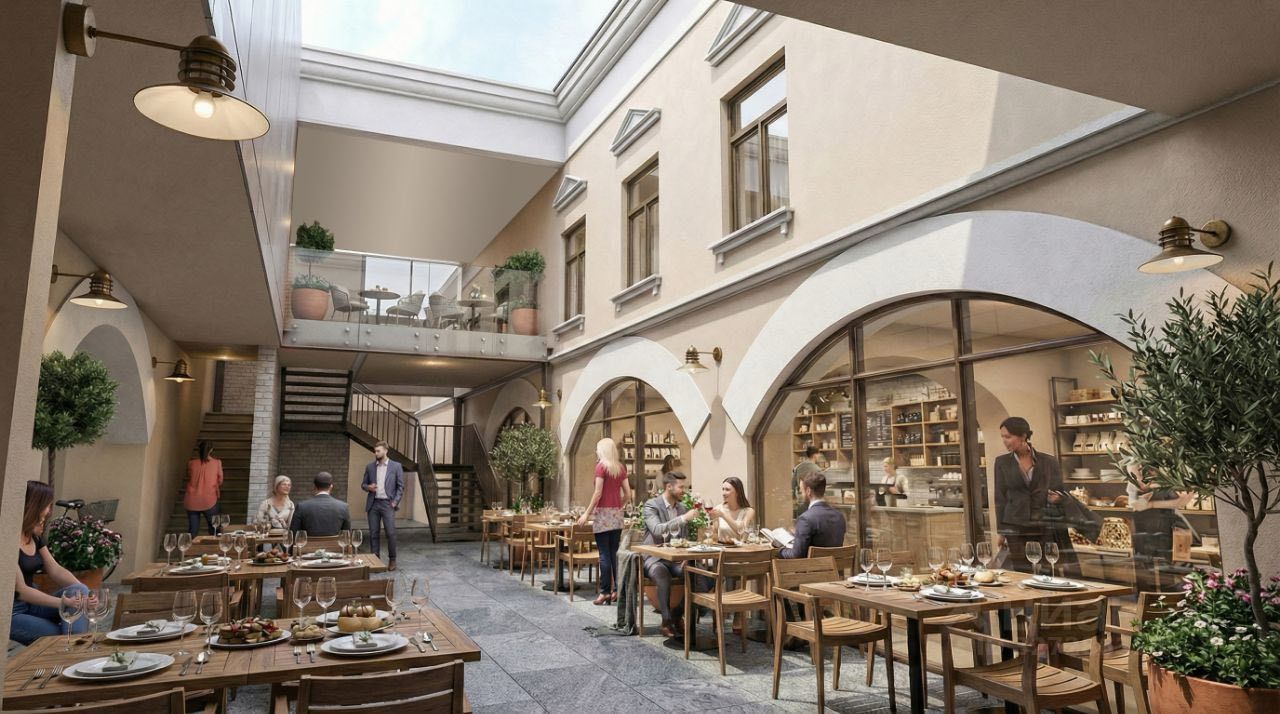 Новый Арт Кластер в историческом здании с летними верандами и мероприятиями.