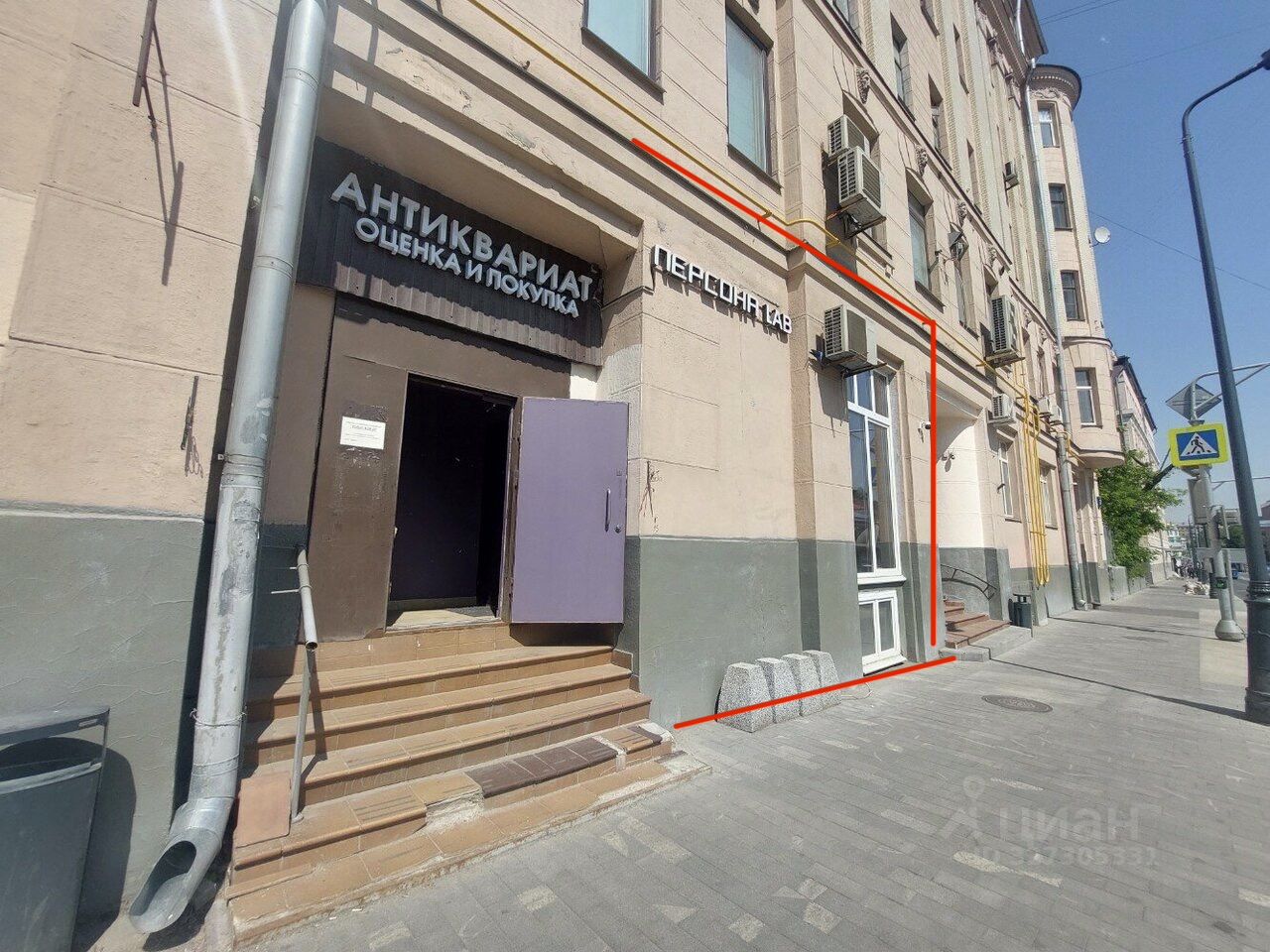 Высокий первый этаж исторического жилого дома. Вход с первой линии, большая витрина на улицу.