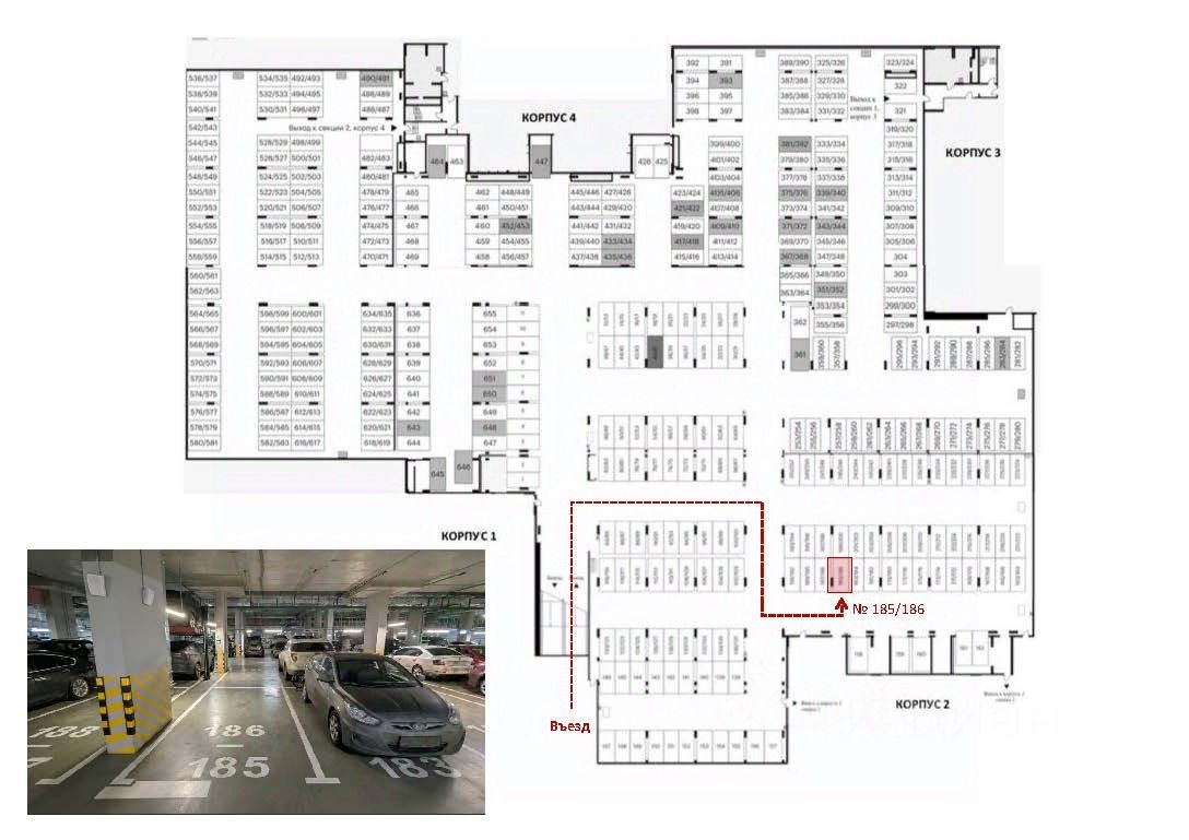 Машиноместо широкое. Находится у колоны, можно широко отрыть двери. Напротив 1 корпуса, но удобно подойти из любого корпуса (см план).