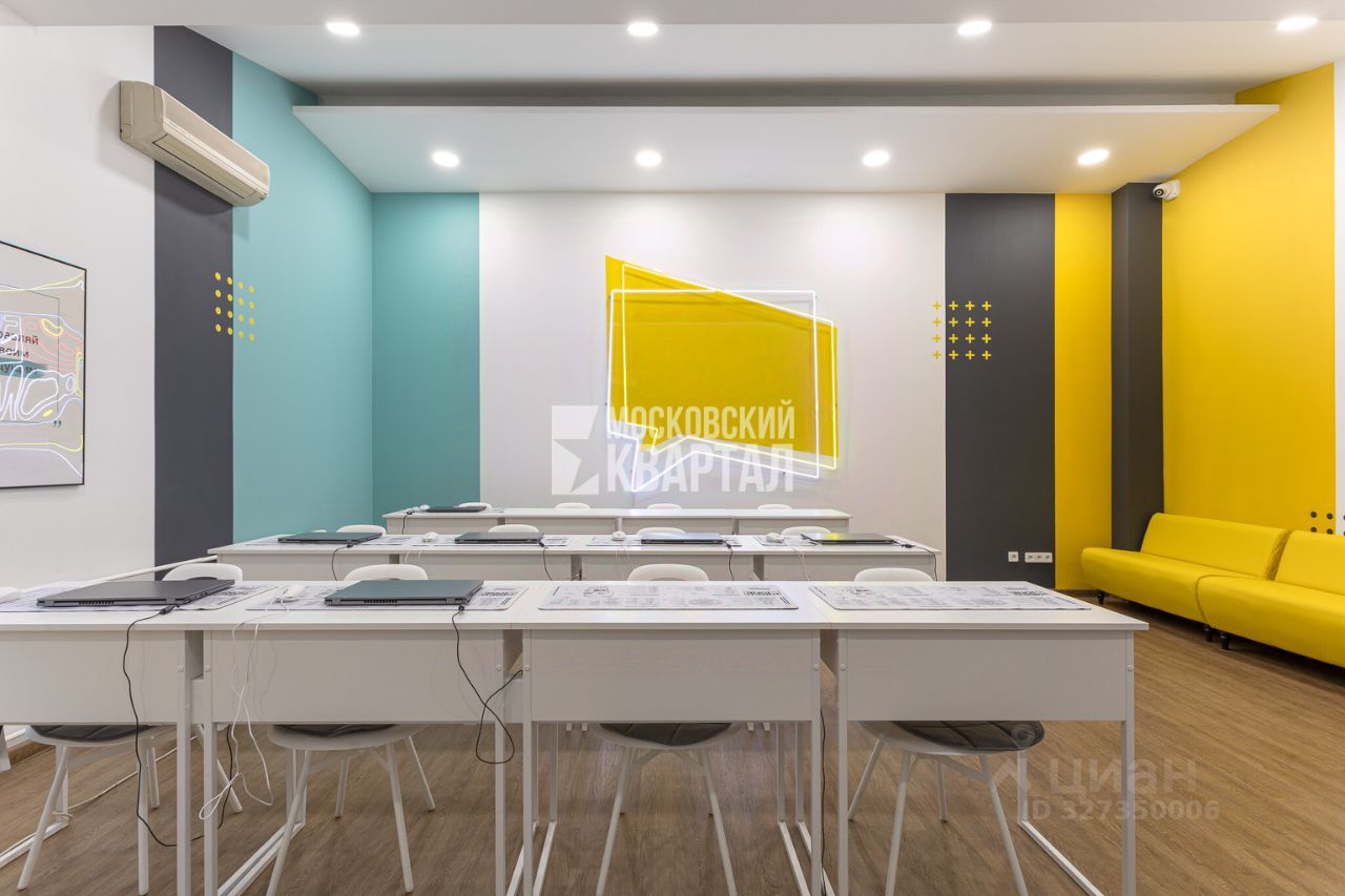 две аудитории под групповую работу, переговорная, комната администратора, кладовая, детская игровая, серверная, сейфовая комната, раздельный санузел, прихожая. Пространство подходит под образовательный центр, офис компании, IT-проект, консультационные услуги, школу, студию или сервисный бизнес.