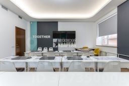 Помещение полностью меблировано и оснащено техникой: рабочие столы, шкафы, стулья, ноутбуки, телевизоры, кондиционеры. Возможна аренда как с полным текущим оснащением, так и без мебели — под задачи арендатора.