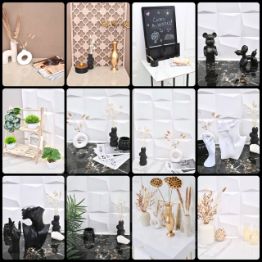 •Много реквизита для предметной съемки. (Столешницы под мрамор, цветы и сухоцветы, бюст и рука для ювелирной съемки и др. элементы декора)
