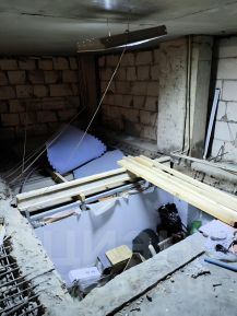 На первом этаже отдельная комната под офис/комнату отдыха с мокрой точкой, второй этаж свободная планировка, высота потолка 2,1 метра (необходимо возвести лестницу и убрать строительный мусор).