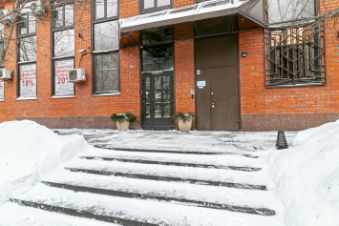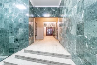 Красивая входная группа, лифт. Есть видеонаблюдение и охрана, но свободный доступ для посетителей.