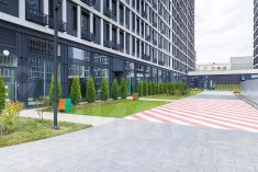 Современная архитектура от T+T Architects с металлическими фасадами, панорамным остеклением и закрытыми дворами (детские площадки playhub, спортзоны) . Комплекс сочетает урбанистику и комфорт - идеально для бизнеса с потоком жителей и посетителей.